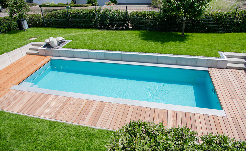 Lassen Sie uns gemeinsam Ihren Pool bauen, der sich harmonisch in die Gartenarchitektur integriert und dabei ruhig und selbstverständlich wirkt.