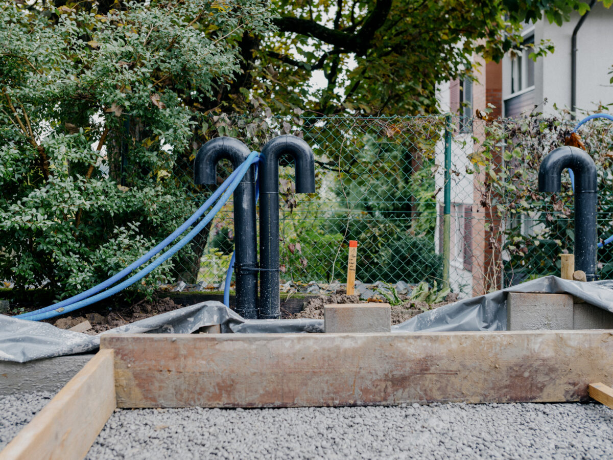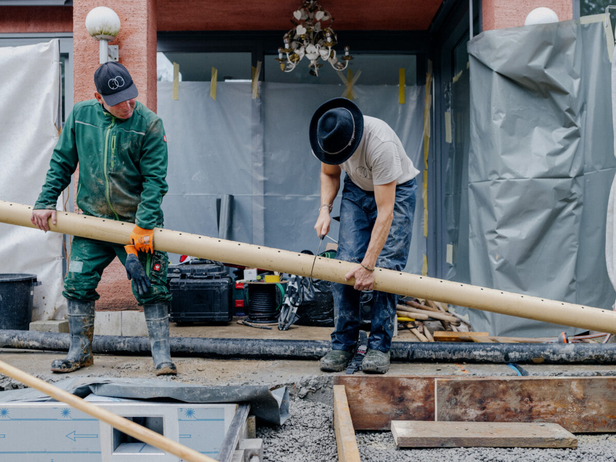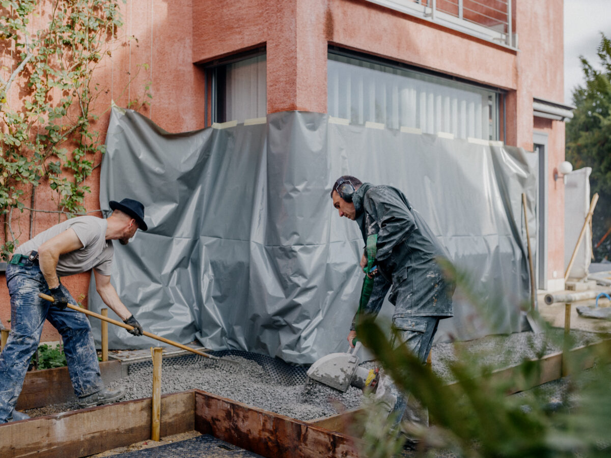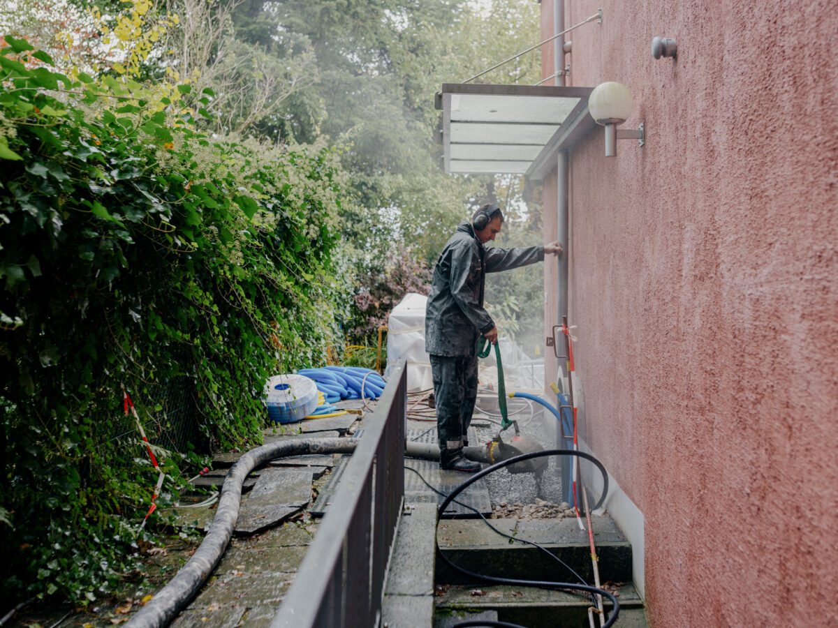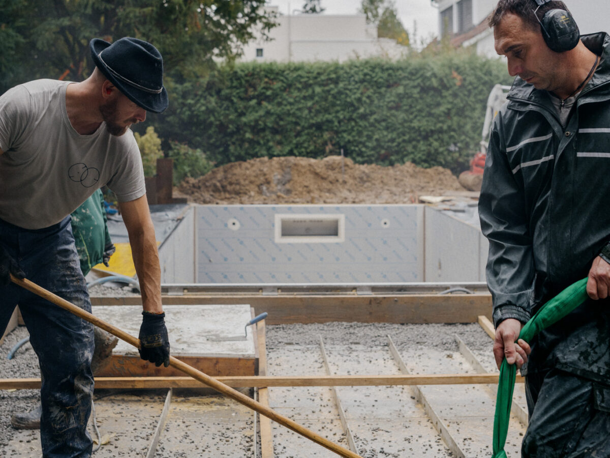Planung, Baueingabe, Baustelleninstallation, Aushub Technikschacht und Leitungsgraben, Betonfundament, Technikschacht einbauen, Aushub Schwimmbad, Bodenplatte betonieren, Lieferung und Montag des Schwimmbads, sanitäre und elektrische Installationen, Hinterfüllarbeiten mit Sickerbeton, Natursteinplattenbelag verlegen, Inbetriebnahme Schwimmbad, Pflanzen setzen, planieren und Rollrasen verlegen.